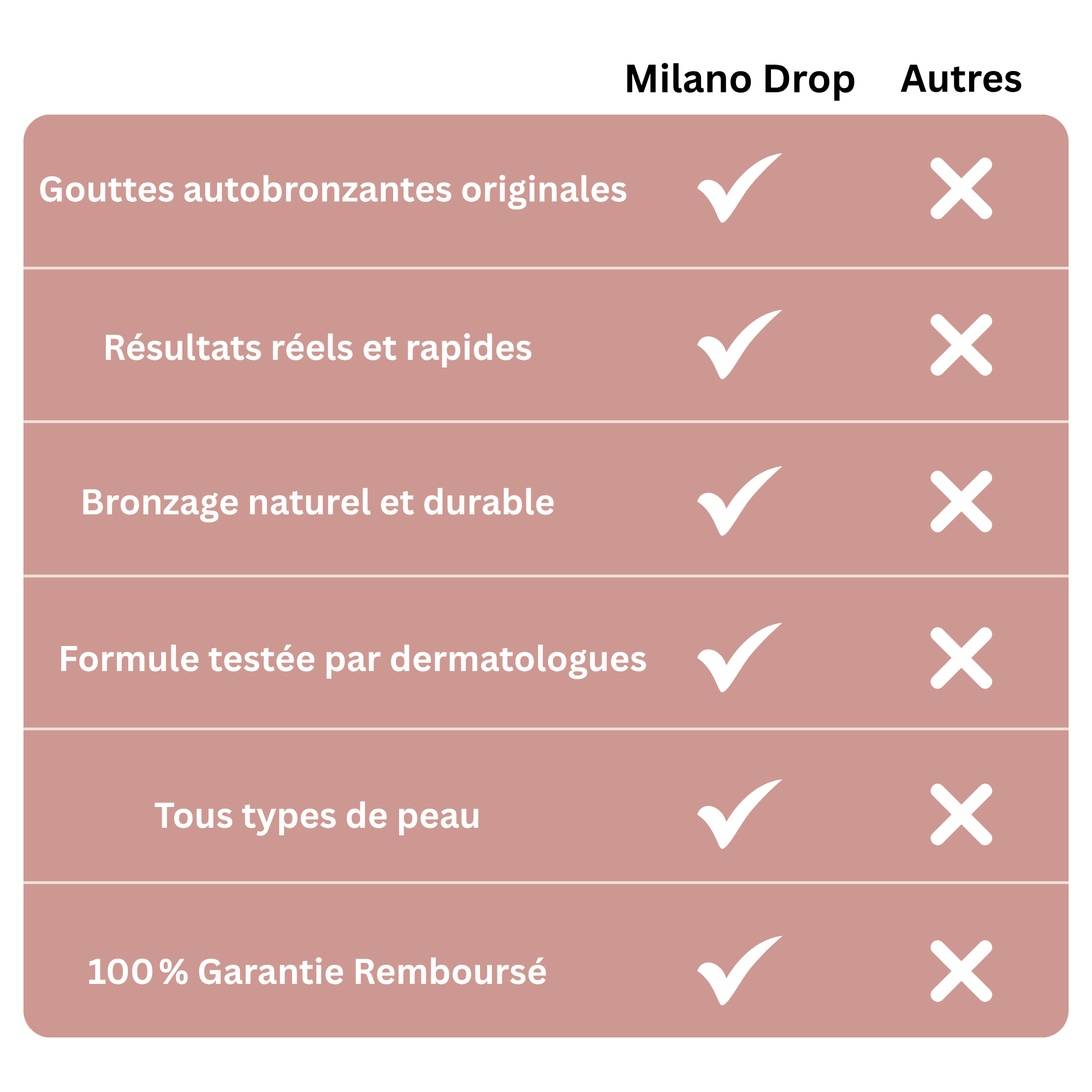 Absolument ! Les gouttes Milano vous offrent un bronzage plus rapide et plus sûr, sans exposition nocive aux UV, sans vieillissement prématuré ni dommages cutanés.